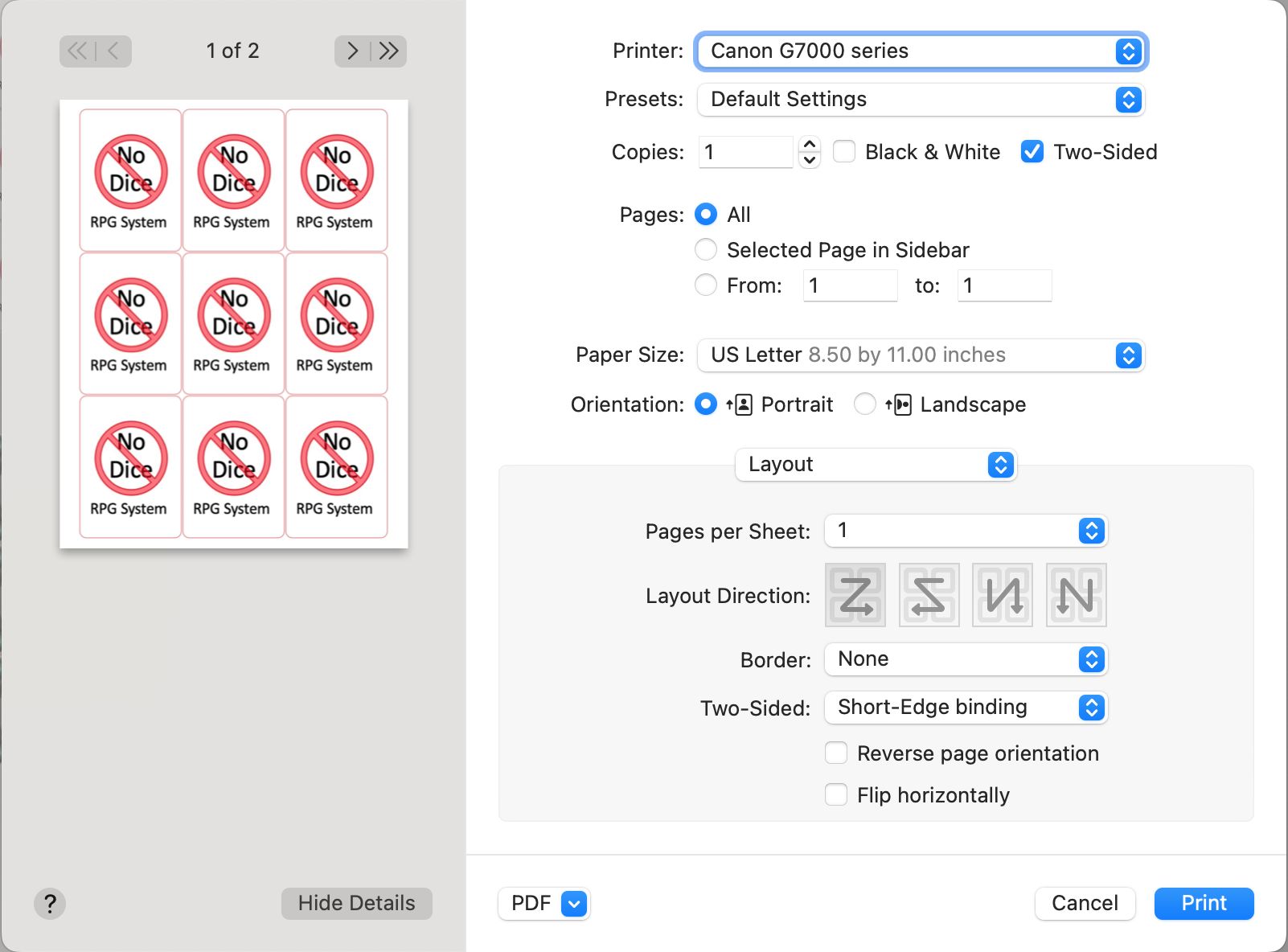 If printing double-sided from a Mac computer using the Preview app, these settings are recommended: