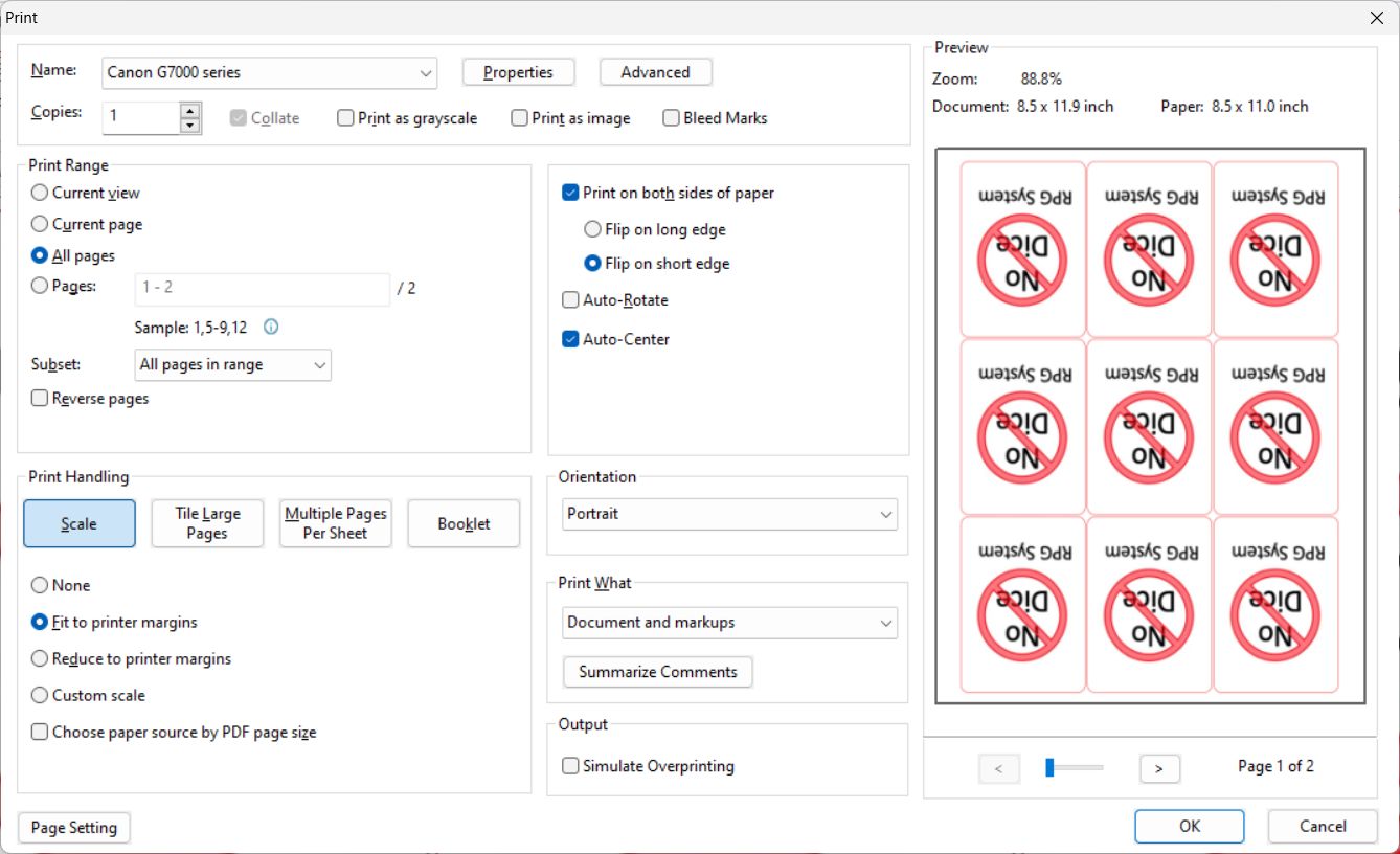 If printing double-sided from a Windows computer using Foxit PDF Reader, these settings are recommended: