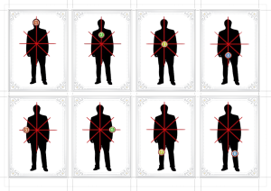 When an Actor scores Body damage against another Actor, they draw a Hit Location Card at random. If the Aiming Extension is used, Actors may also bid to choose a Hit Location, rather than drawing a card at random. Choose the Location Cards deck corresponding to the type of Actor that was damaged.